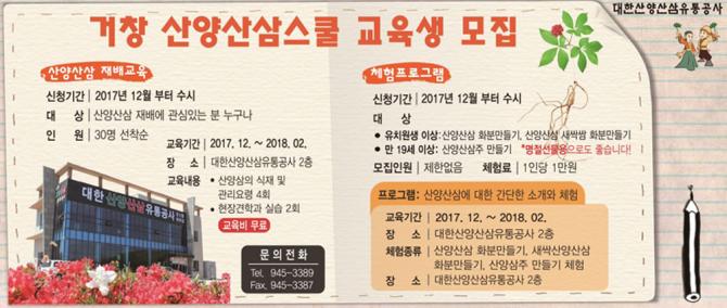 (2017. 12.15) 거창산양삼스쿨 교육생 모집공고