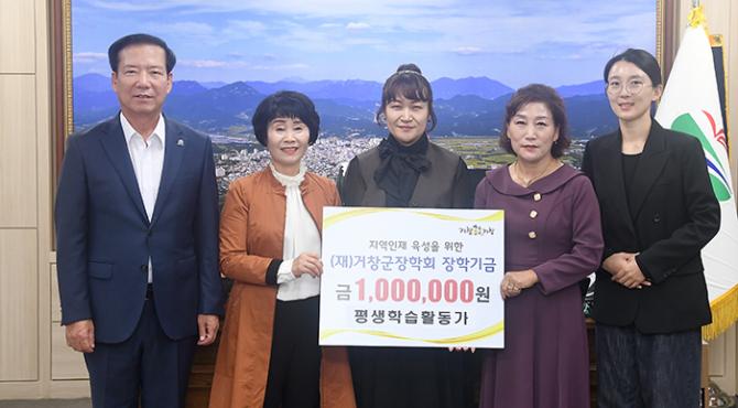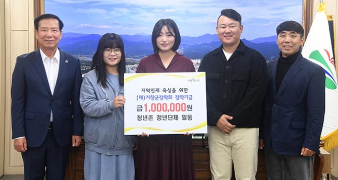 (재)거창군장학회(이사장 구인모)는 10월 18일 군수실에서 평생학습활동가(회장 신연숙)와 2024 한마당 대축제 청년존 부스 운영 청년들이 각각 100만 원씩 장학금을 기탁했다고 밝혔다.
