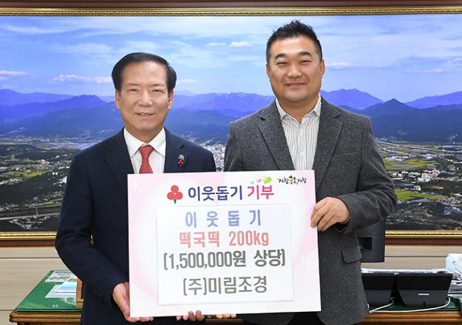 김정수 ㈜미림조경의 대표는 150만 원 상당의 떡국떡 200kg을 기부했다.
