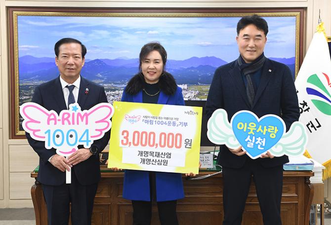개명목재산업은 어려운 이웃을 돕기 위해 꾸준히 수익금의 일부를 아림1004 운동에 기부하고 있으며, 이번에도 300만 원을 전달했다.