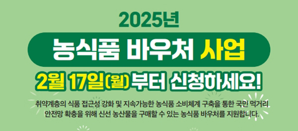신청은 주민등록 주소지 읍·면 행정복지센터 방문 신청하거나, 온라인 농식품바우처 누리집(foodvoucher.go.kr), 자동 응답 시스템(ARS) 전화(☎1551-0857)를 통해 가능하다.