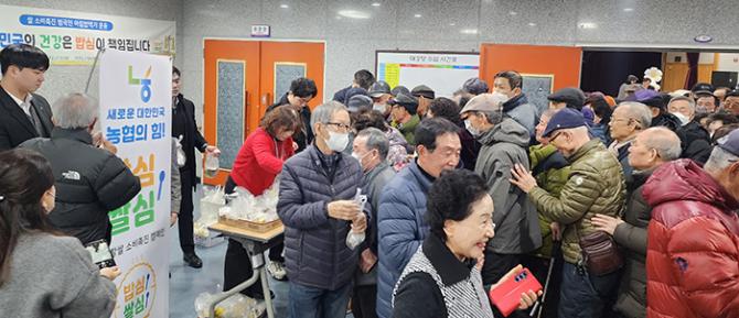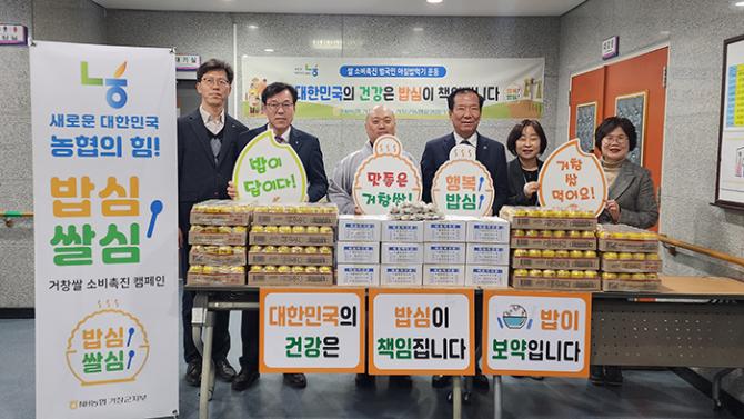 농협거창군지부(지부장 이희열)는 2월 18일 거창군삶의쉼터(관장 선용스님) 실버대학 입학식을 맞아 거창 쌀 소비확대를 위한 홍보행사와 무료급식 지원 및 배식봉사를 실시했다.