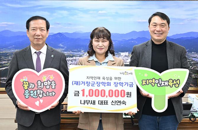 (재)거창군장학회의 이사이자 평생학습활동가 회장인 신연숙 나무새 대표는 2023년부터 매년 100만 원을 기탁해 오고 있다.