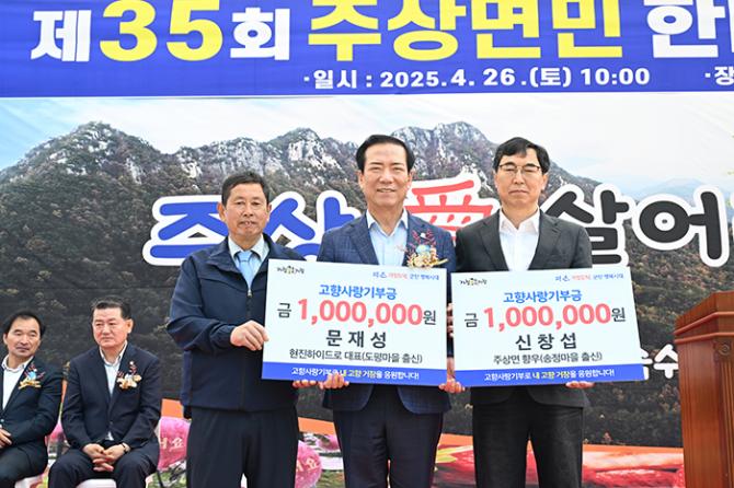 현장에서 고향사랑기부금을 전달한 향우는 남상면 박동명 향우 500만 원, 고제면 박봉제 향우 100만 원, 주상면 신창섭, 문재성 향우가 각각 100만 원씩 기부하면서, 총 800만 원의 기부금을 전달했다.