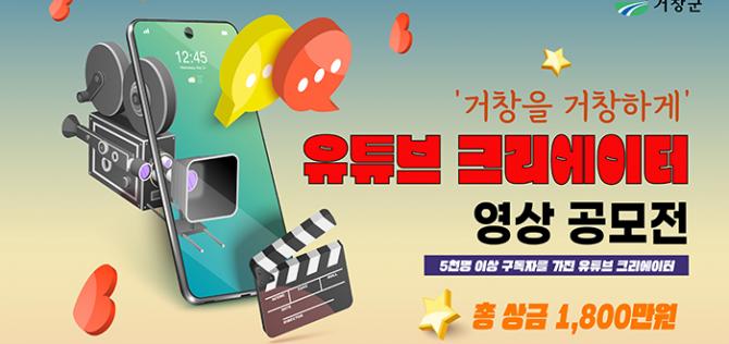 거창군은 구독자 수 5천 명 이상을 보유한 유튜브 크리에이터를 대상으로 ‘거창을 거창하게’ 유튜브 영상 공모전을 개최한다.
