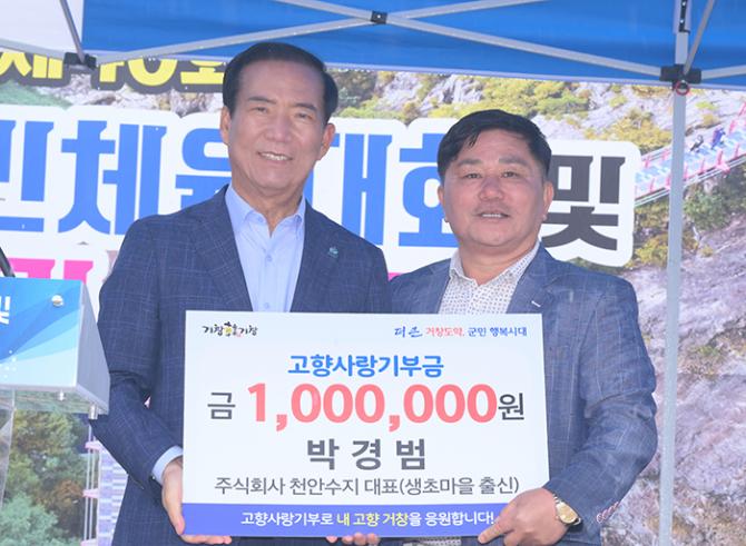 거창군은 5월 3일 면민 체육대회 현장에서 거창사랑을 실천하는 향우들의 고향사랑기부가 이어졌다고 전했다.
