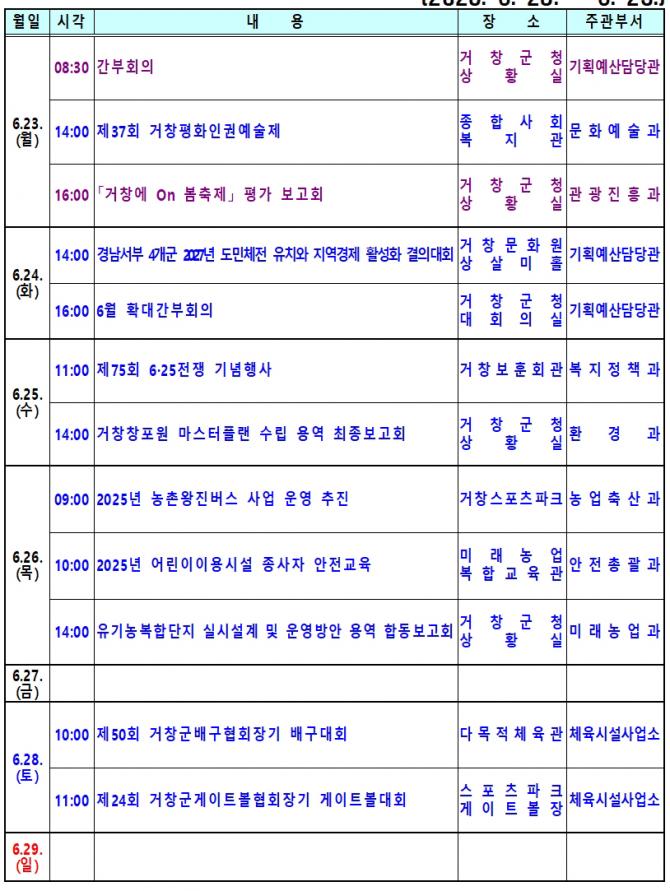 거창인터넷뉴스원은 거창군의 업무일정을 군민들에게 알림으로써 군정에 관심있는 군민들의 궁금증을 해소하고, 군민과 함께 하는 정보공유의 장으로 만들어 나가겠습니다.