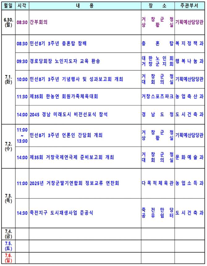 거창군이 매일 어떤 행정을 펴나가는지 궁금하십니까? 거창인터넷뉴스원은 거창군의 업무일정을 군민들에게 알림으로써 군정에 관심있는 군민들의 궁금증을 해소하고, 군민과 함께 하는 정보공유의 장으로 만들어 나가겠습니다.