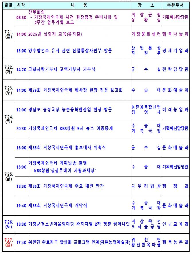 거창군이 매일 어떤 행정을 펴나가는지 궁금하십니까? 거창인터넷뉴스원은 거창군의 업무일정을 군민들에게 알림으로써 군정에 관심있는 군민들의 궁금증을 해소하고, 군민과 함께 하는 정보공유의 장으로 만들어 나가겠습니다.