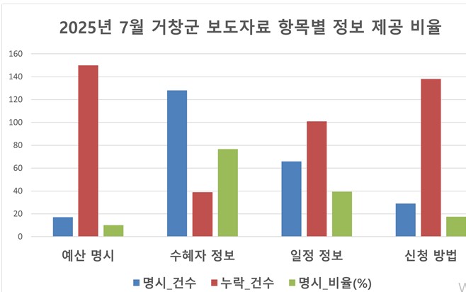 [그래프 1: 2025년 7월 거창군 보도자료 4대 기본 정보 제공률]
