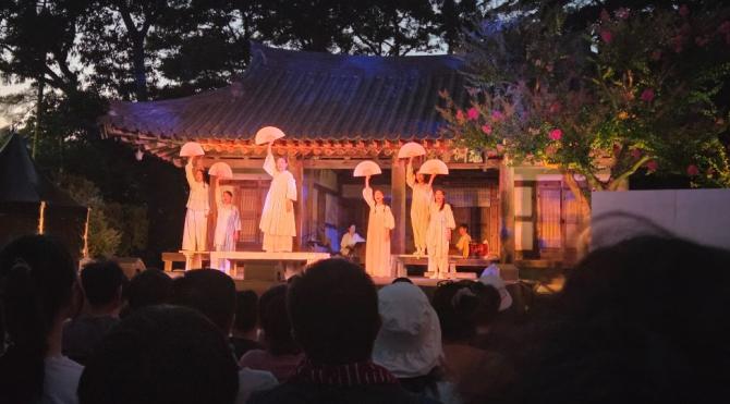 특히, 이번 연극제에서 또 하나 주목할 만한 점은 ▲수승대 거북바위를 배경으로 한 1,000석 규모의 ‘거북극장’ ▲구연서원을 무대로 한 ‘구연서원극장’ ▲대나무숲을 자연스럽게 무대의 배경으로 품은 ‘대나무극장’ 등 수승대의 자연을 최대한 연극무대의 배경으로 녹여내서, 자연 속에서 펼쳐지는 전국에서 가장 아름답고 자연 친화적인 야외 연극축제를 만들어 냈다는 것이다.