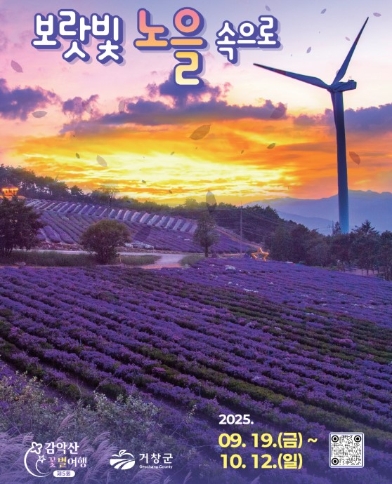 거창군의 가을을 보랏빛으로 물들일 ‘제5회 감악산 꽃별 여행’이 오는 9월 19일부터 10월 12일까지 24일간 별바람언덕(신원면 연수사길 452)에서 개최된다고 밝혔다.