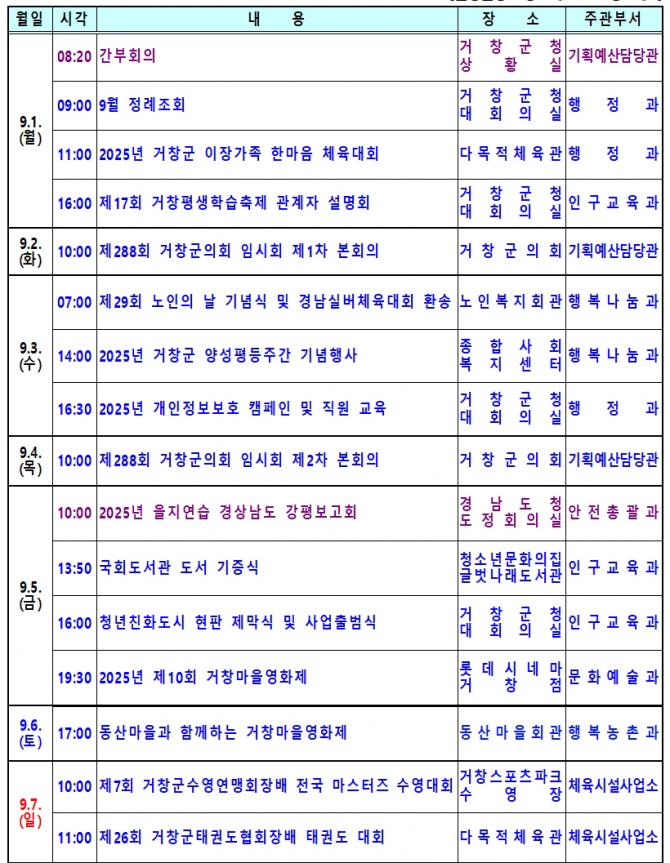 거창군이 매일 어떤 행정을 펴나가는지 궁금하십니까? 거창인터넷뉴스원은 거창군의 업무일정을 군민들에게 알림으로써 군정에 관심있는 군민들의 궁금증을 해소하고, 군민과 함께 하는 정보공유의 장으로 만들어 나가겠습니다.