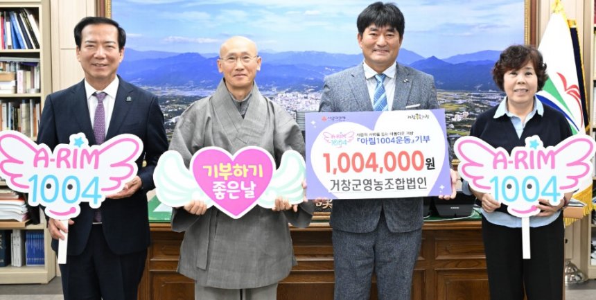 이번 기탁에는 남상면 어울림마을 부녀회(회장 김경희)와 신원면 청연마을 부녀회(회장 우훈자)가 각각 300만 원을 아림1004운동에 전달했으며, 푸드트럭 운영업체 고니푸드(대표 노태곤)와 머글랭(대표 유정은)도 각각 100만 원, 50만 원을 기탁했다.