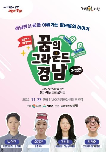 구인모 거창군수는 “이번 토크 콘서트가 청소년들이 자신의 가능성을 발견하고 미래를 향해 나아가는 출발점이 되길 바란다”며 “경남 곳곳에서 꿈을 이뤄가는 청년들의 이야기가 학생들에게 새로운 꿈과 용기를 심어주길 기대한다”고 말했다.