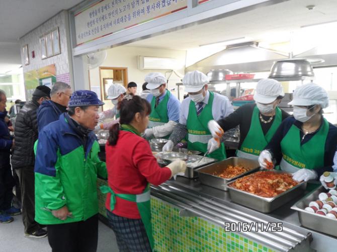 거창농협 고주모(고향을 생각하는 주부들의 모임) 동문회(회장 신명숙)는 25일 거창군삶의쉼터(노인․여성․장애인복지관)에서 복지관 이용자 약 600여 명에게 점심식사로 곰국을 무료로 제공했다.