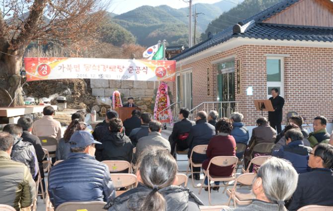 거창군 가북면(면장 김순현)은 15일 양동인 군수와 김순현 면장 및 지역기관단체, 주민들이 참석한 가운데 ‘몽석마을 신축경로당 준공식’을 개최했다.