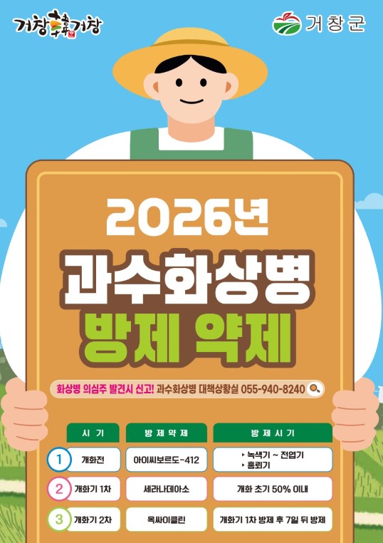 김규태 농업기술센터 소장은 “과수화상병은 상시 예찰과 적기 방제 실천이 무엇보다 중요하다”며 “농업인 스스로가 경각심을 가지고 철저한 사전 방제로 화상병으로부터 청정한 거창을 지켜주시길 당부드린다”고 말했다.