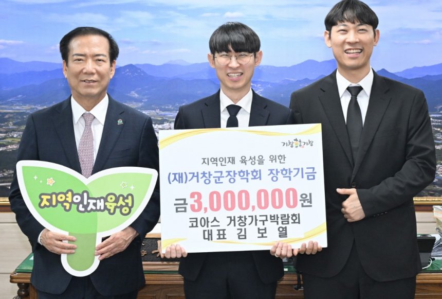 또, 2019년부터 꾸준히 아림1004운동에 참여해 나눔문화 확산에 동참해 왔던 코아스 거창가구박람회(대표 김보열)는 올해 거창군장학회에 300만 원을 기탁하며 지역인재 양성에 힘을 보탰다.