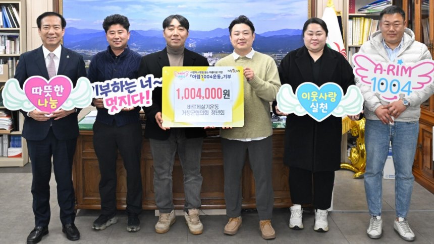 바르게살기운동 거창군협의회 청년회(회장 최영진)는 올해 처음 아림1004운동에 성금100만 4천 원을 기탁했다.