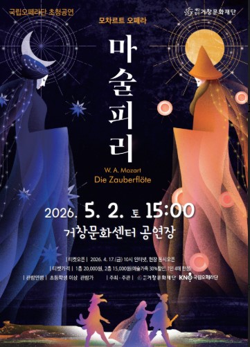 (재)거창문화재단은 오는 5월 2일 오후 3시 거창문화센터 공연장에서 국립오페라단이 선보이는 오페라 ‘마술피리’를 개최한다.