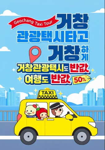 한편 관광택시는 거창군 문화관광누리집(www.geochang.go.kr/tour.web)을 통해 예약 가능하며, 「거창반값여행」누리집(www.geochangtour.kr)은 오는 13일 오전 10시에 열린다.