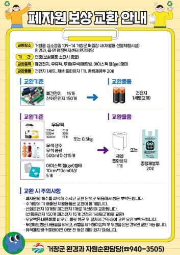 거창군은 자원순환 실천과 올바른 분리배출 문화 정착을 위해 폐자원보상 교환 사업을 확대 시행한다고 9일 밝혔다.