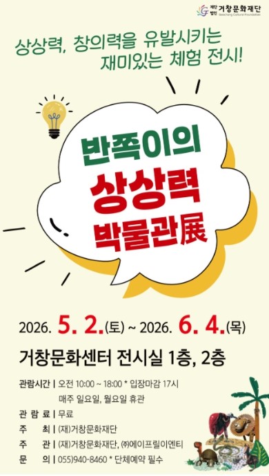 (재)거창문화재단은 가정의 달을 맞이해 오는 5월 2일부터 6월 4일까지 거창문화센터 전시실에서 2026년 기획전시 「반쪽이의 상상력 박물관展」을 개최한다.